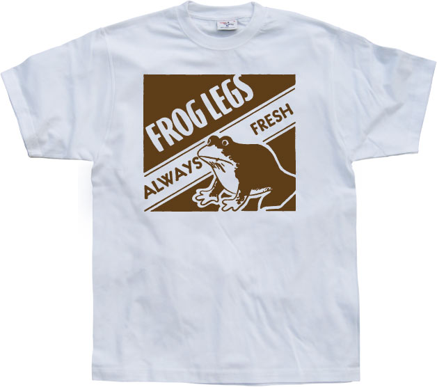 Kul nostalgi-tröja från 50-talet med reklam för "Alltid lika fräscha grodlår"! ...smaskens...