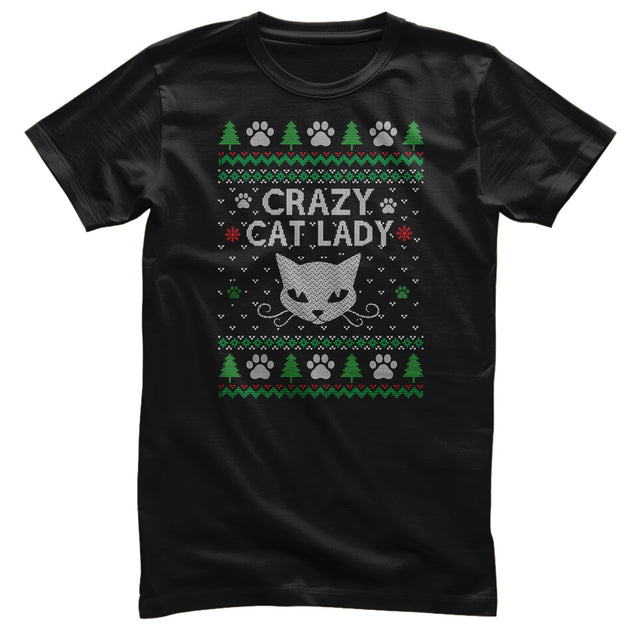 Crazy Cat Lady Christmas Pattern Tee
