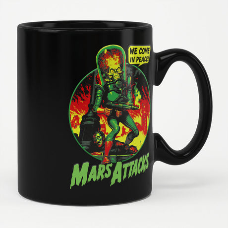 Jos pidät hulluista katseenvangitsijoista, niin Mars Attacks -tuotteemme ovat sinua varten. Vuoden 1962 Topps-korttien klassisilla kuvioilla, groteskien marsilaisten hullulla tyylillä, joka vapauttaa tuhon maan päällä... nämä t-paidat ja muut tuotteet vangitsevat kaaoksen, joka teki tästä sarjasta kulttisuosikin scifin ja kauhujen parissa.